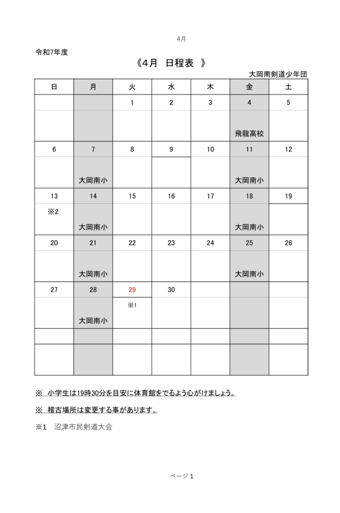 • 4月の日程表