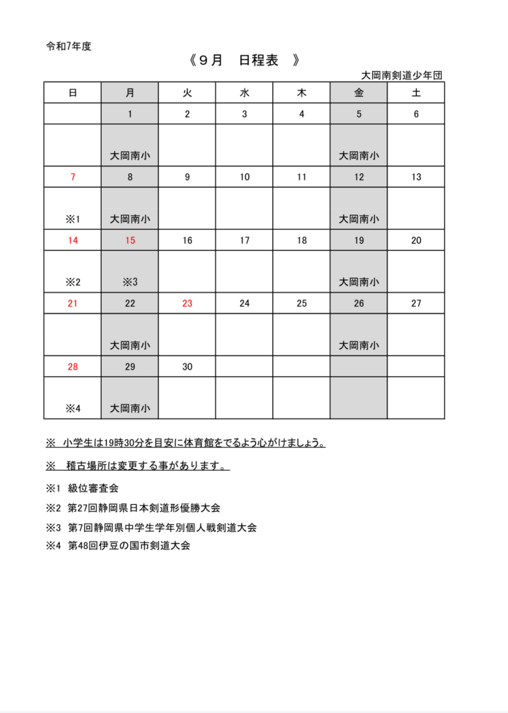 • 9月の日程表